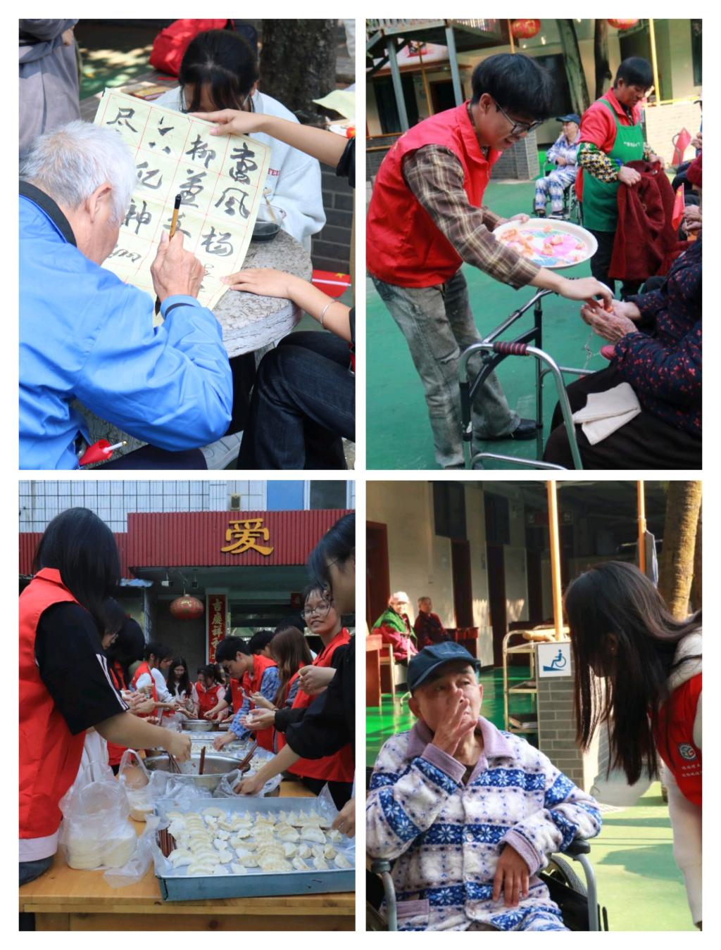 活动过程中,同学们首先向老人们致以亲切问候,与老人们促膝谈心,分享校园生活趣事,认真倾听老人们的人生经历与往事回忆,在互动交流中传递关怀与温暖。随后通过打扫卫生、表演才艺、共同包饺子等活动环节,为老人们改善了居住环境、丰富了精神生活,让他们在双向互动中感受到社会关怀的温度,体会到被牵挂、被重视的幸福感;同时,从耐心倾听、动手劳作到贴心陪伴,每一个环节都是践行传统美德的实践课堂,既让大家在付出中深刻体会到劳动的价值与意义,更推动了受助学生将“被资助”的温暖转化为“去助人”的责任担当。